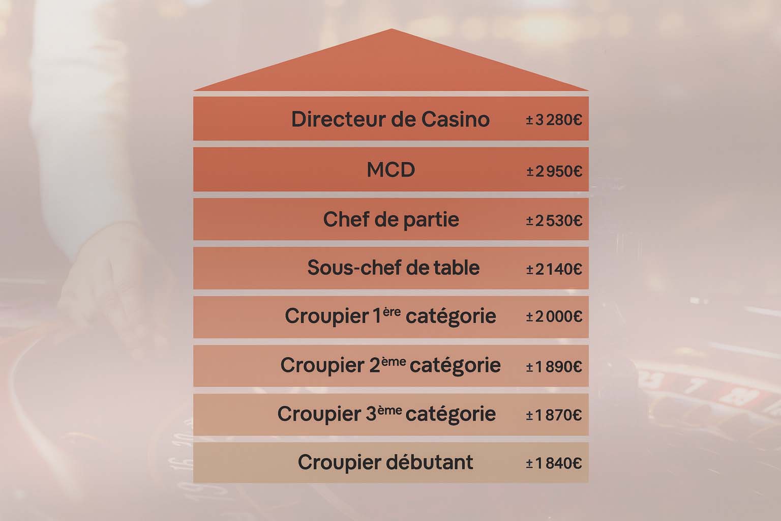 Après avoir acquis une bonne expérience en tant que croupier, il vous sera possible de devenir chef de table, chef de partie voire même responsable d’une salle de jeux pour les plus ambitieux.